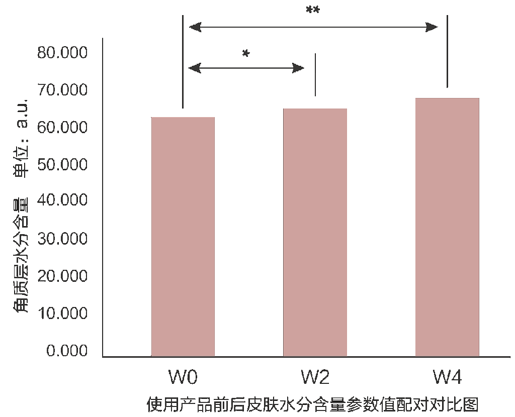 結(jié)論:表明去端肽膠原蛋白具有持續(xù)而有效地提高肌膚保濕性的作用,顯著提升肌膚水分含量,具有顯著性的保濕效果。